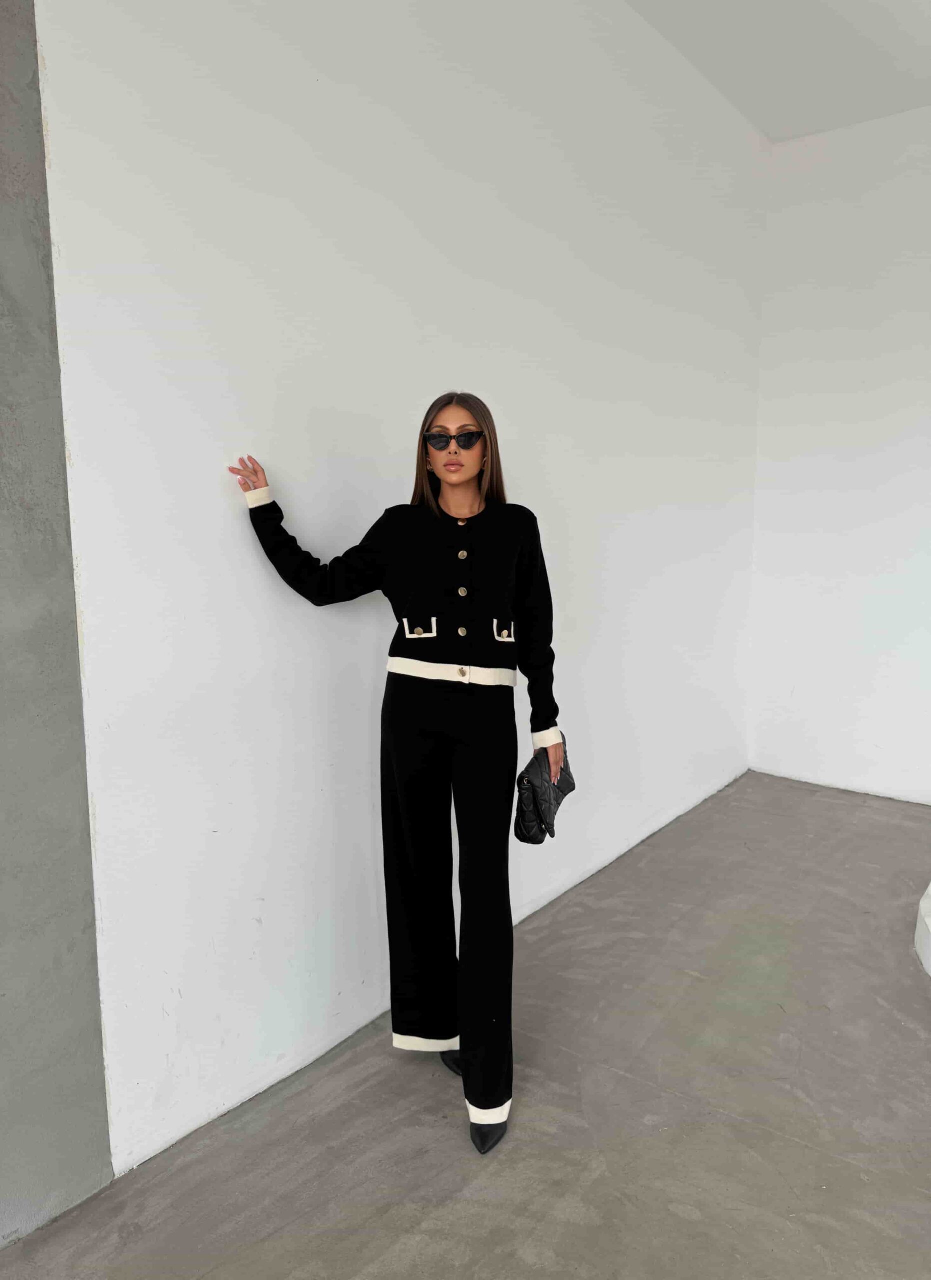 Cep Detaylı Buton Düğme Aksesuarlı Triko Takım