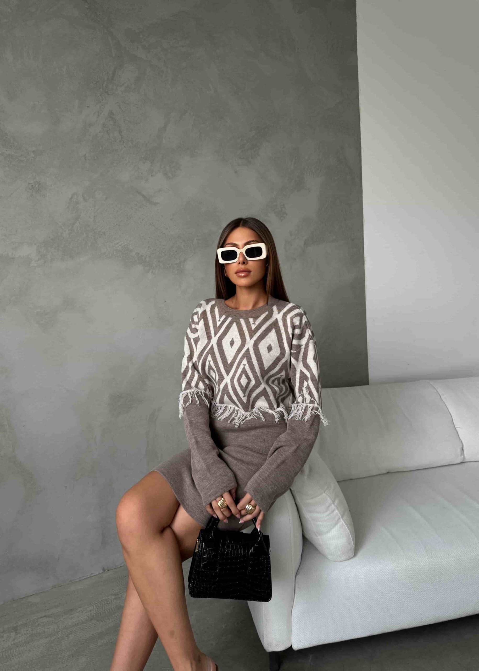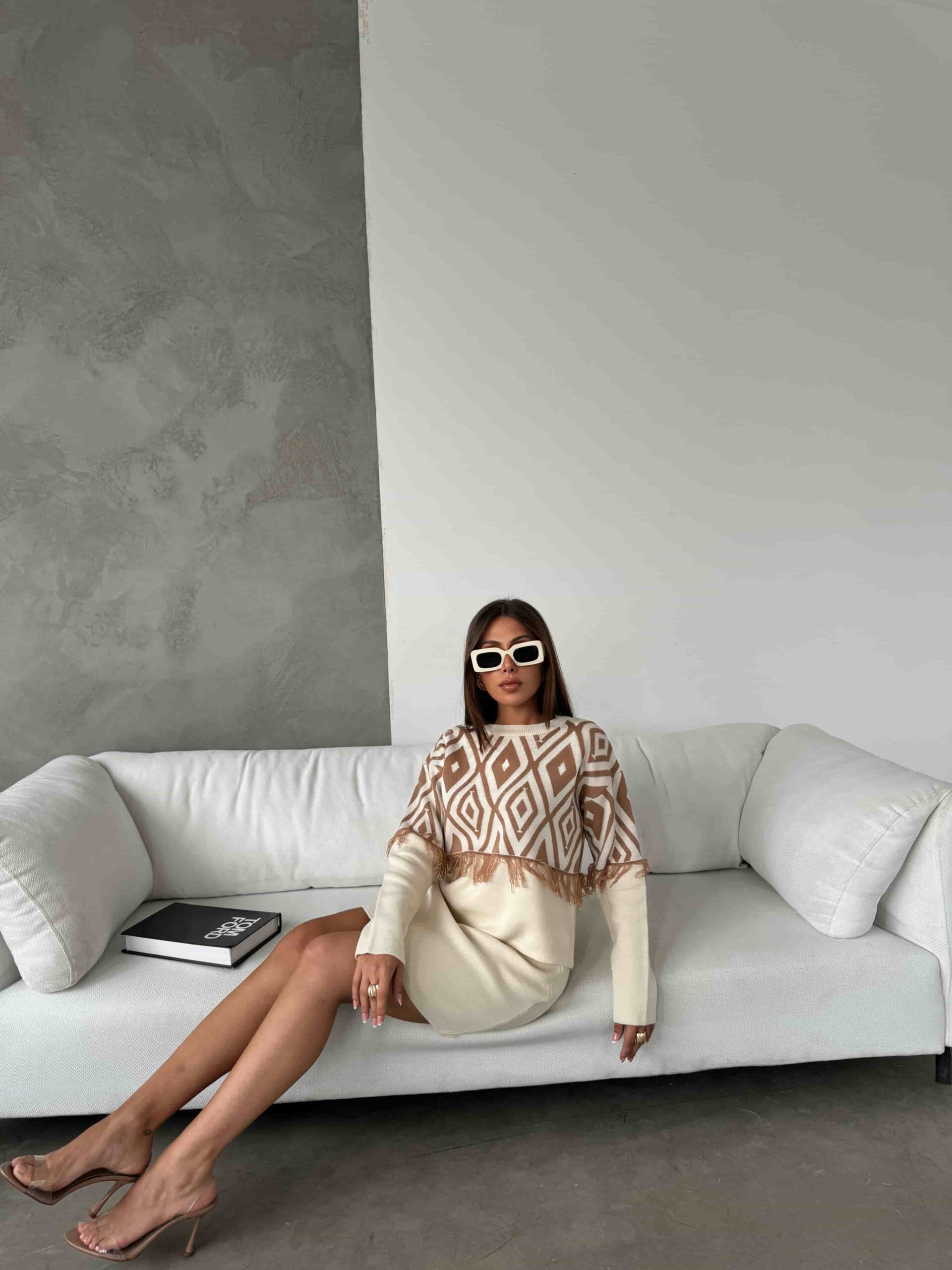 Püskül Detaylı Triko Kazak Etek Takım